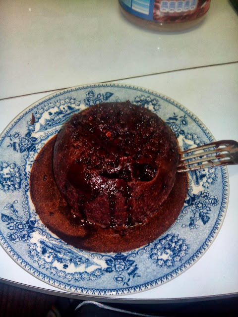 Como à uma e tal da manha nao estava com paciência para fazer e esperar por um bolo decente, arrisquei fazer uma receita de bolo na caneca que tinha aqui por casa.
